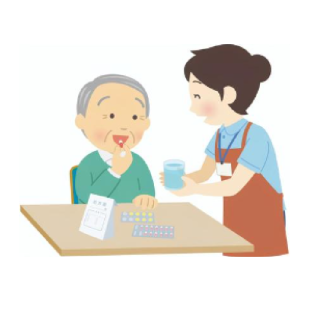 入居者様の健康管理を行います。(バイタルチェック)協力医療機関から医師が定期的(2週間に1回)に往診します。また、24時間体制で管理していただけますので、緊急時も支持を仰ぎ、対応します。